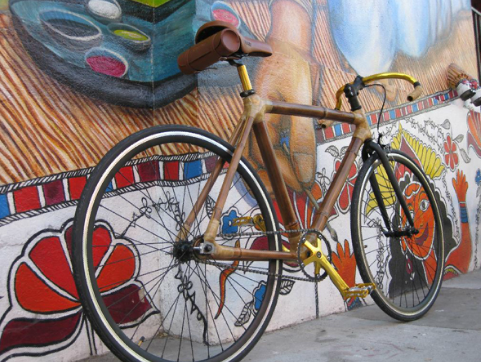 Bamboo bikes can be unique and beautiful bikes. I suspect though that if you want to be the first on your block with a bamboo bike you better get moving. They’re popping up everywhere. Treadlie magazine finds it hard to go a whole issue without a smattering of bamboo bikes on its pages. You can even buy one on ebay for $350: